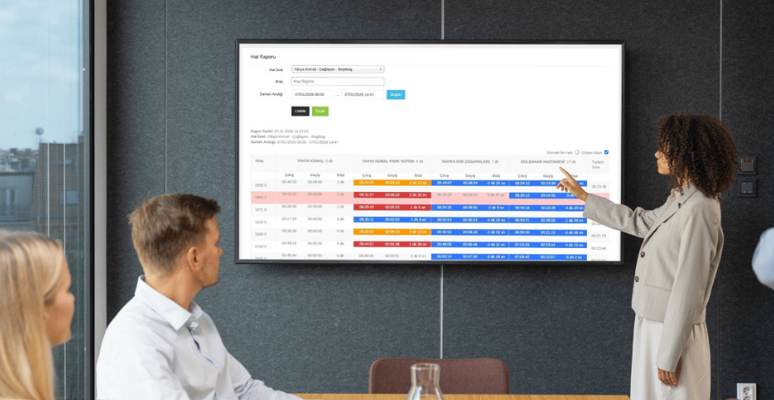 Servis araçlarının anlık konumu, rota düzeni ve zaman planlaması tek merkezden yönetilir. Gecikmeler azaltılır, operasyonel verimlilik artırılır.